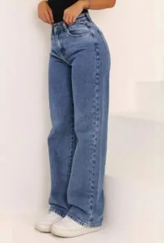 Calça Jeans Wide Leg Feminina Cintura Alta Pantalona
