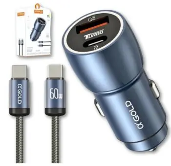 Carregador Super Turbo Veicular 60W Duas Portas, Carregamento Ultra Rápido USB 3.0, 9,1A, Entrada USB e Tipo C, Acompanha Cabo Tipo C, Produto Super Premium Para Veículos