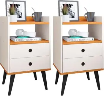 Jogo Quarto Kit Mesa de Cabeceira Pequena Retrô Mesinha Canto Cama Gaveta Nicho Decorativo – Off White/Cinamomo – RPM