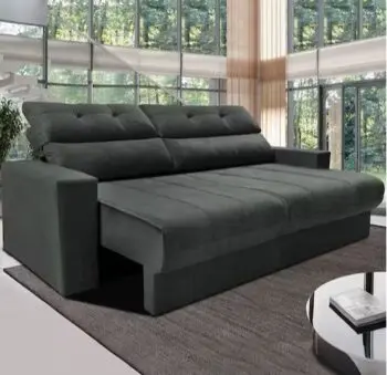 Sofá 3 Lugares Cama Inbox Clean com Assento Retrátil e Encosto Reclinável em Tecido Velusoft – 190cm de Largura – Cinza
